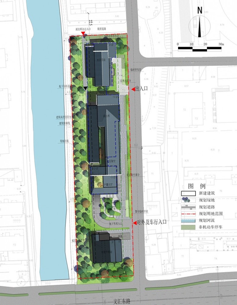 本地塊位于揚州市廣陵區(qū)范圍內(nèi),文匯東路北側(cè),大學北路東側(cè),石塔南路西側(cè),建筑面積5450平方米。對規(guī)劃區(qū)域功能進行合理分區(qū),精心組織、科學安排,根據(jù)地塊狹長的特點,結(jié)合建筑功能,采用一字型布局方式。建筑造型結(jié)合現(xiàn)代元素采用揚州地方傳統(tǒng)風格設(shè)計,體現(xiàn)傳統(tǒng)與現(xiàn)代的完美統(tǒng)一。結(jié)合西側(cè)河流與東側(cè)道路兩側(cè)合理安排景觀小品、小游園,打造精致景觀環(huán)境。