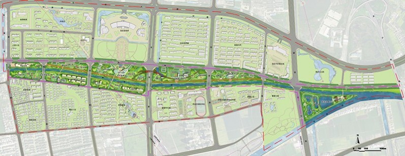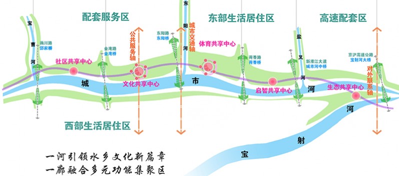 項目位于寶應縣經濟開發區南部,設計范圍為東起滬陜高速,南鄰七里路—寶射河,西至寶曹河,北臨人民路,總用地面積約56.25公頃。該項目規劃打造“一河一廊五心多軸”的整體空間結構。同時對范圍內各用地的功能性質、優勢項目,以及所需配套進行研究,串聯各類用地,注入文化、休閑和生態等多種元素,將該片區打造成多元融合的城市公共片區。激發城市活力、達到區域功能協調、城鎮和諧發展的目的。